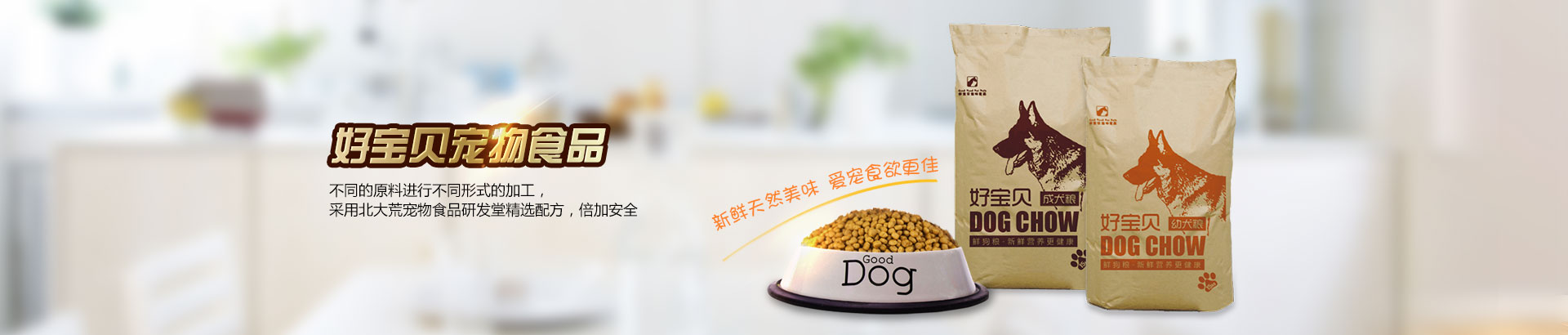 好宝贝宠物食品对不同的原料进行不同形式程度的加工, 采用北大荒宠物食品研发堂精选配方,倍加安全,不含人类弃用食材,符合人类可食用标准。新鲜天然美味,无污染的食材,保留天然原味,爱宠食欲更佳。原生态深海鱼: 营 养价值更高,低敏感,易于爱宠吸收。新鲜肉品,经过肉品新鲜度检测,确保美味又营养。好宝贝宠物食品系列包括:旅游狗粮、狗场专业粮、半湿狗粮、离乳期狗粮、幼犬期狗粮、成犬期狗粮、赛级犬专用粮、妊娠 期狗粮、哺乳期狗粮、老年期犬粮等等。